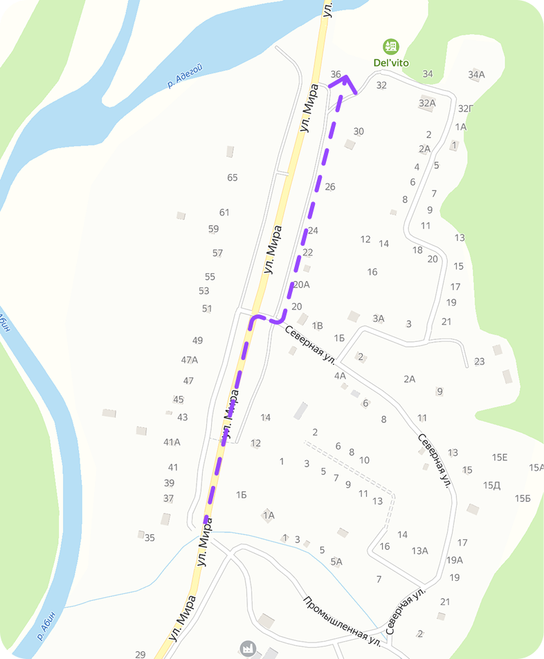 3. Сверните направо на улицу Северная (ориентир — первый перекресток после моста над рекой Шапарка).